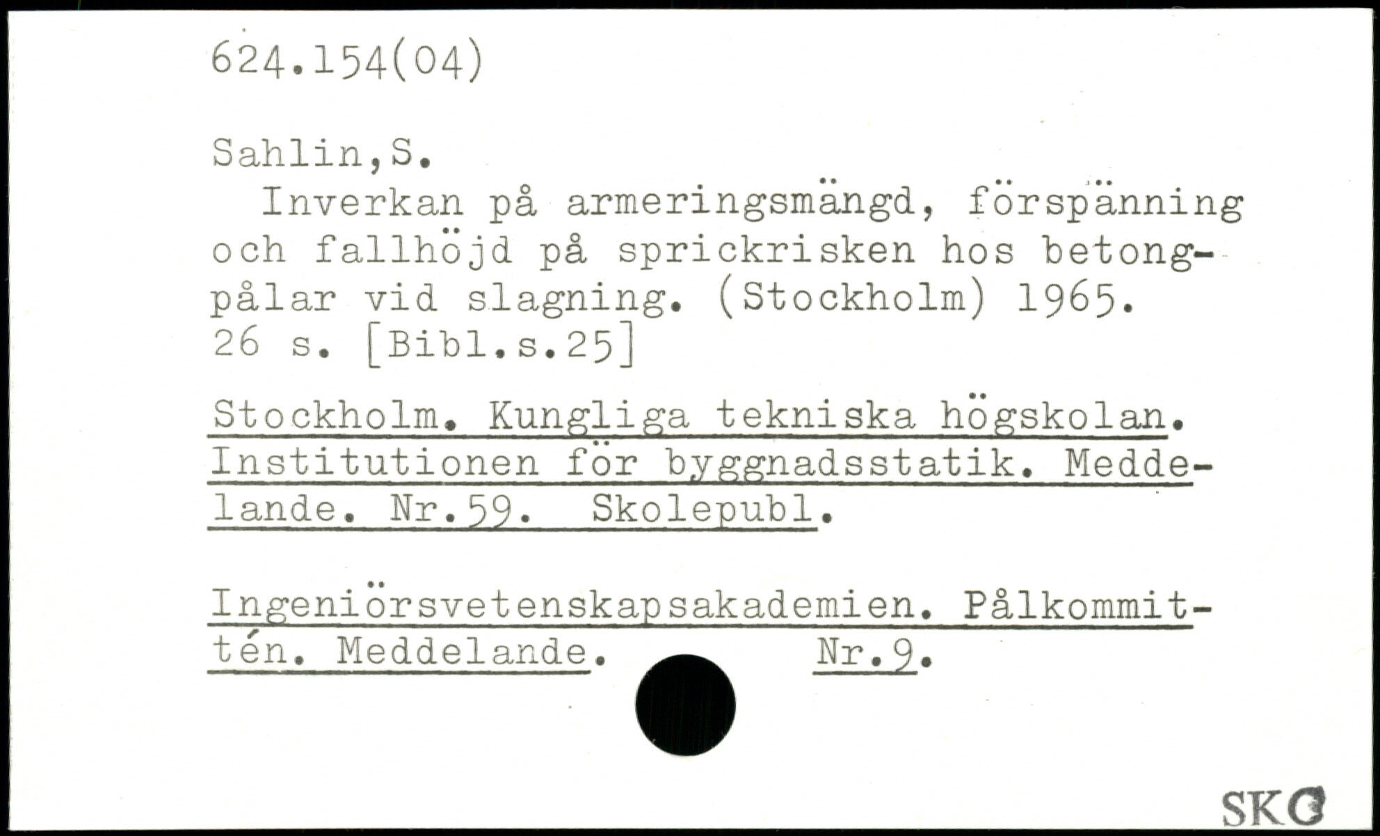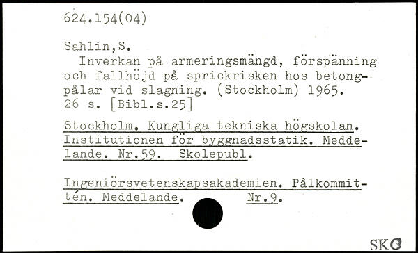 Inverkan på armeringsmangd, förspänning och fallhöjd på sprickrisken hos betongpålar vid slagning. (Stockholm) 1965.