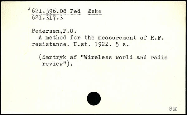 A method for the measurement of R.P. resistance. U.st. 1922.