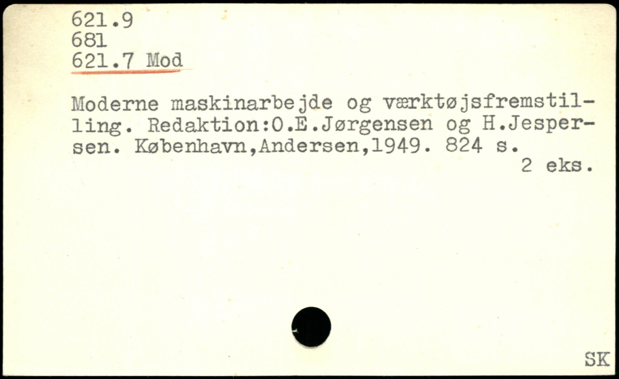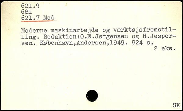Moderne maskinarbejde og værktøjsfremst1111ng. Redaktion:0.E.Jørgensen og H.Jespersen.