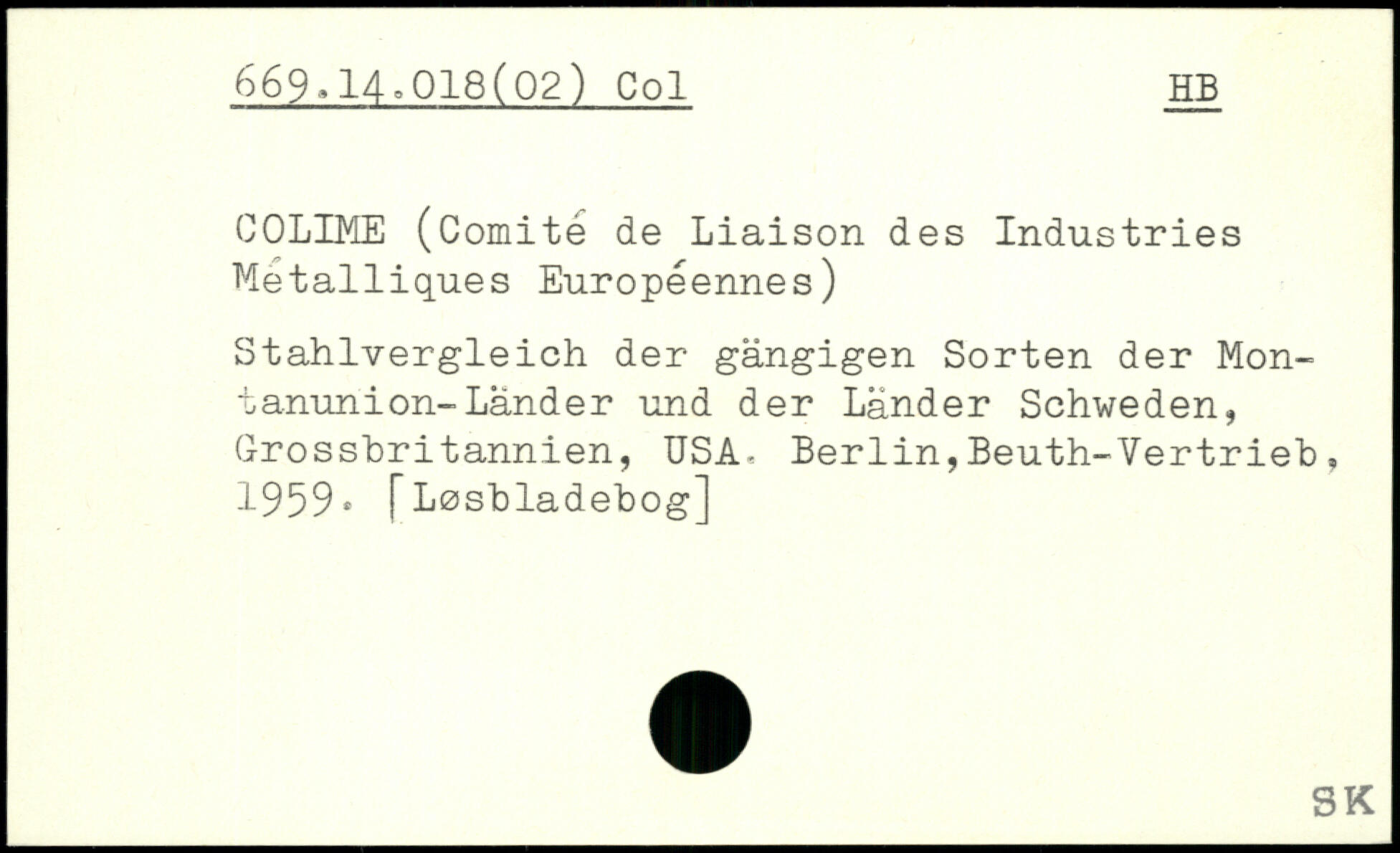 COLXME (Comité de Liaison des Industries Métalliques Européennes) Stahlvergleich der gängigen Sorten der Montanunion-Lander und der