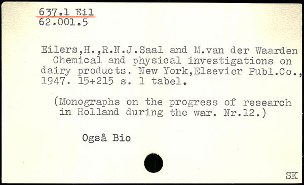 Eilers,H. ,R.II. J.Saal and M.van der Waarden Chemical and physical investigations on daily products. New York,Elsevier Publ.Co., 1947.