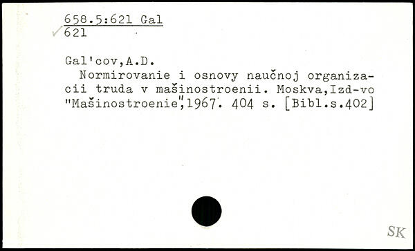 Gal1 coy,A.D. Normirovanie i osnovy naucnoj organiza-cii truda v masinostroenii. Moskva,Izd-vo "Masinostroenie'i 1967.