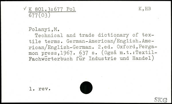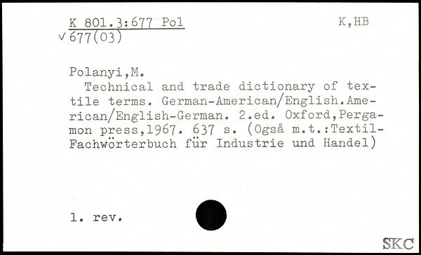 Technical and trade dictionary of textile terms. German-American/English.Ame-rican/English-German.