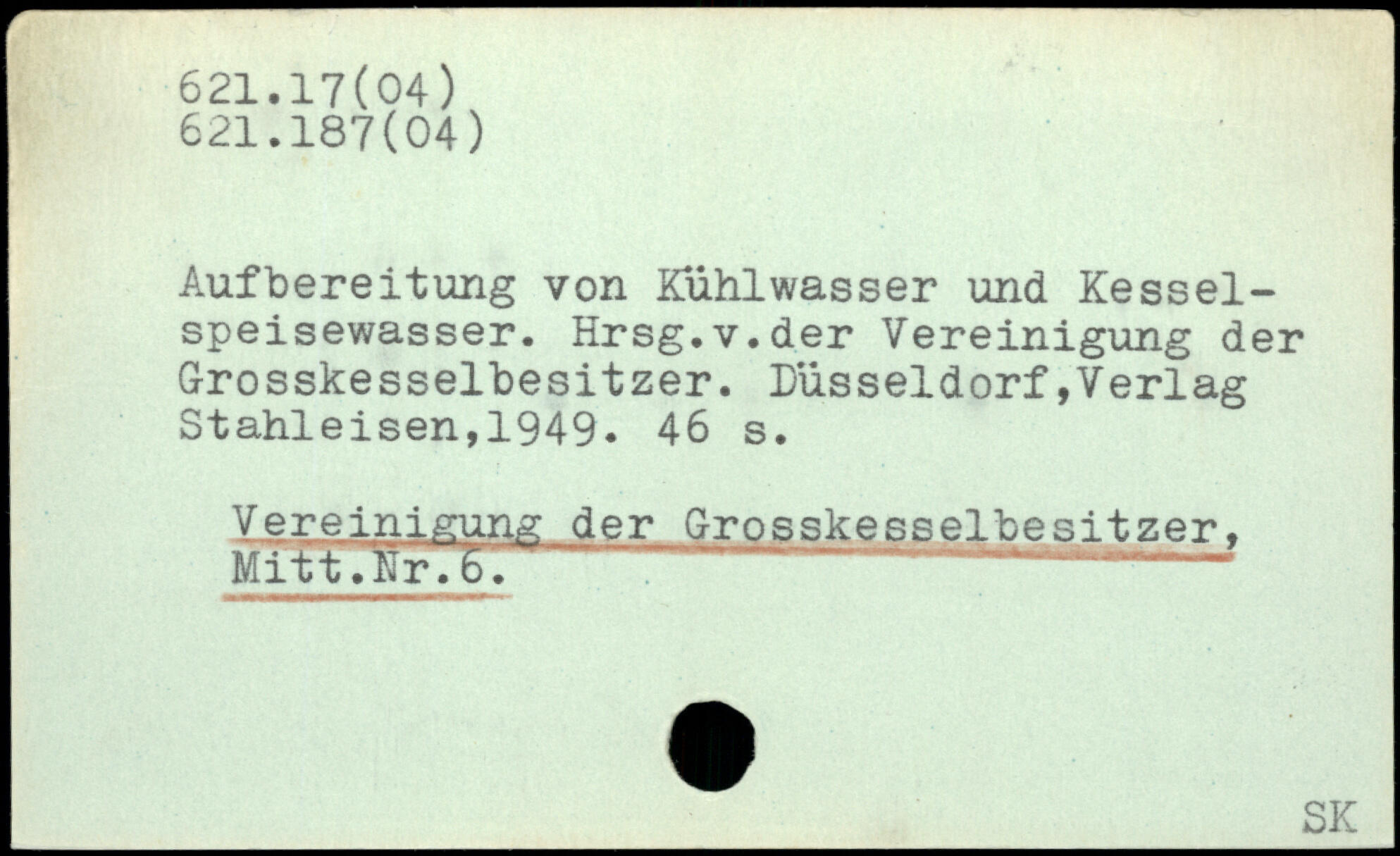 Aufbereitung von Kühlwasser und Kessel-speisewasser. Hrsg.v.der Vereinigung der Grosskesselbesitzer.