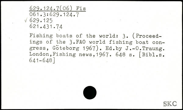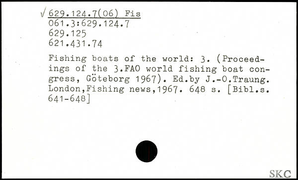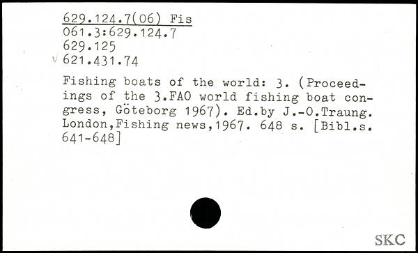 Fishing boats of the world: 3. (Proceedings of the 3.FA0 world fishing boat congress, Goteborg 1967). Ed.by J.-O.Traung.