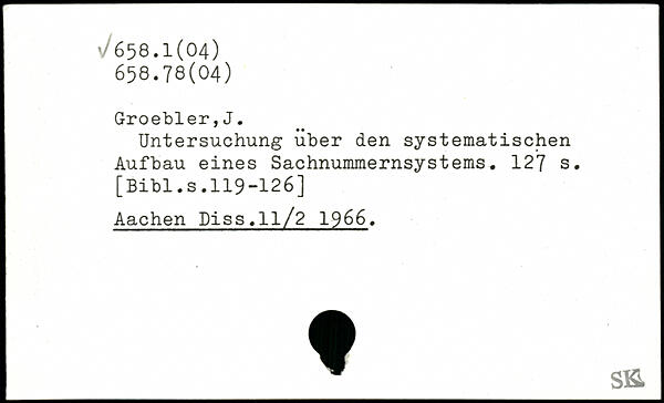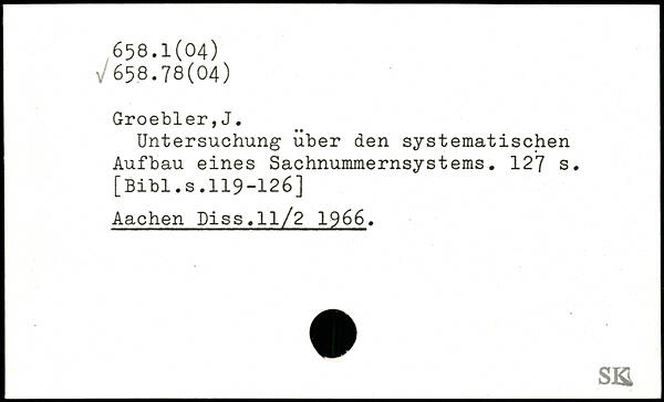 Untersuchung über den systematischen Aufbau eines Sachnummernsystems.