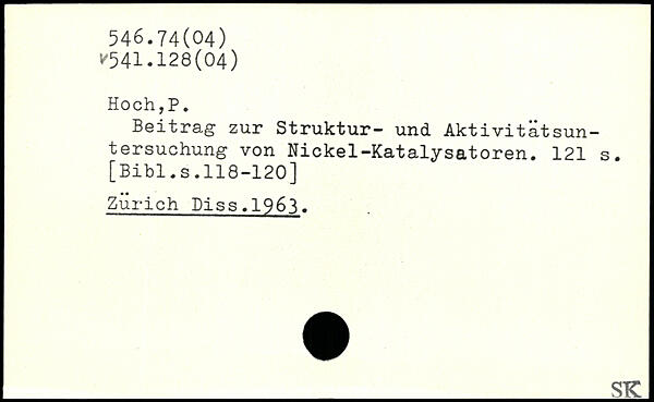 Beitrag zur Struktur- und Aktivitätsun-tersuchung von Nickel-Katalysatoren.