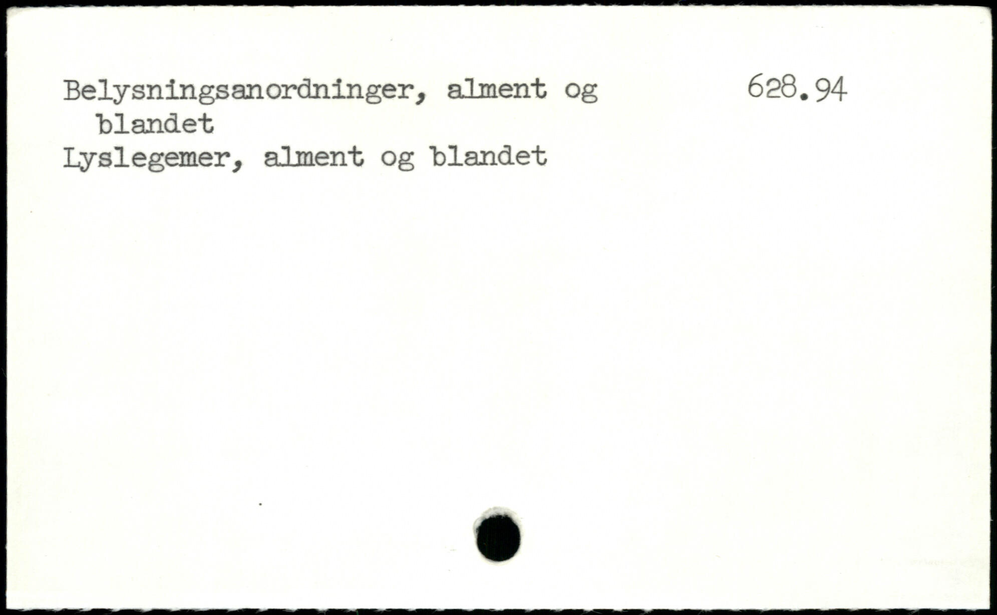 Belysningsanordninger, alment og 628.94 Blandet Lyslegemer, alment og "blandet