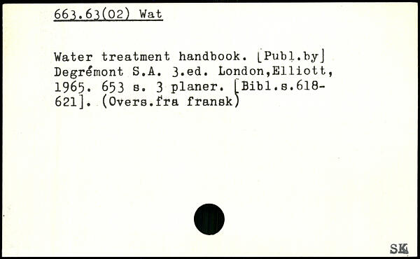 Water treatment handbook. [Publ.hyJ Degrémont S.A.