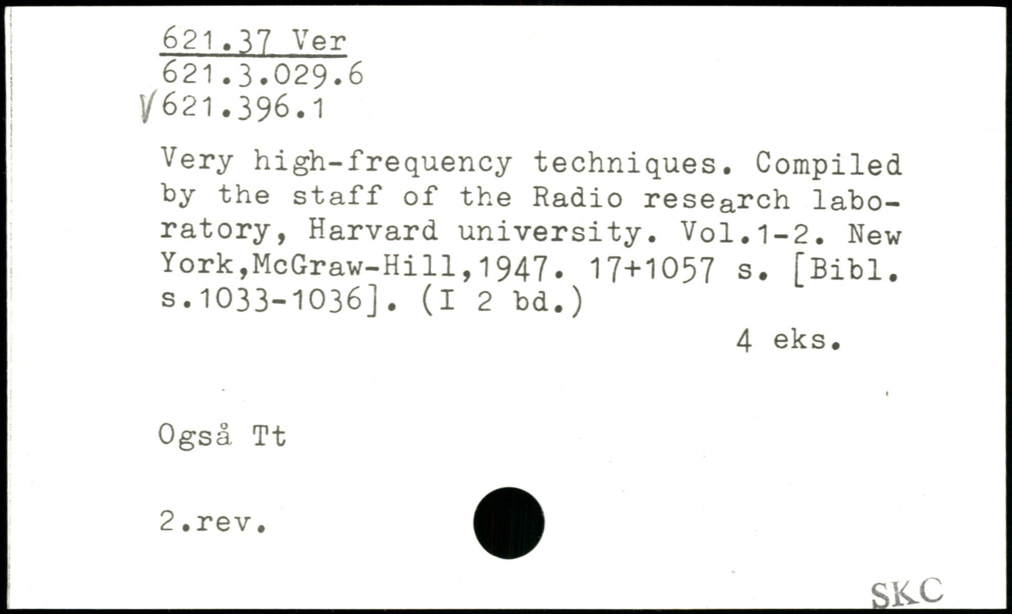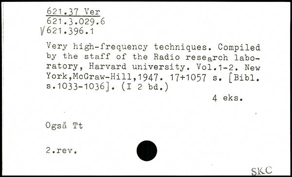 Very high-frequency techniques. Compiled by the staff of the Radio research laboratory, Harvard university.