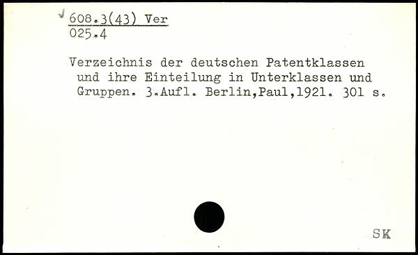 Verzeichnis der deutschen Patentklassen und ihre Einteilung in Unterklassen und Gruppen.