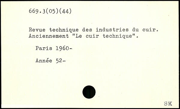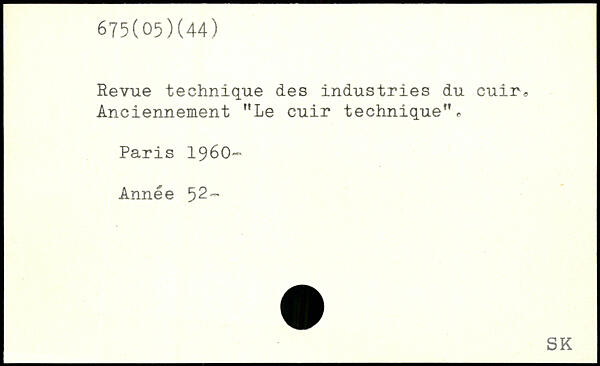 Revue technique des industries du cuir. Anciennement "Le cuir technique"