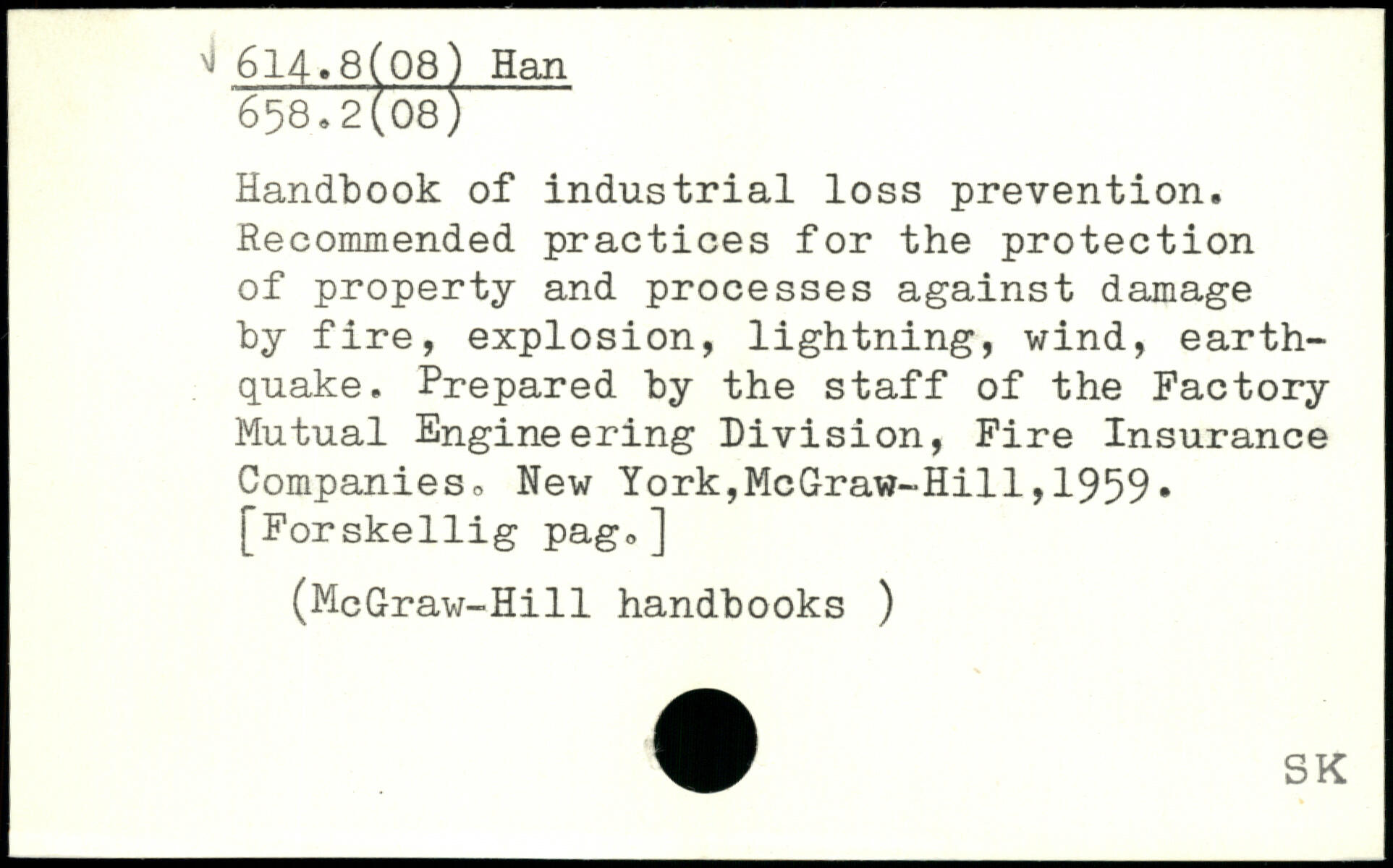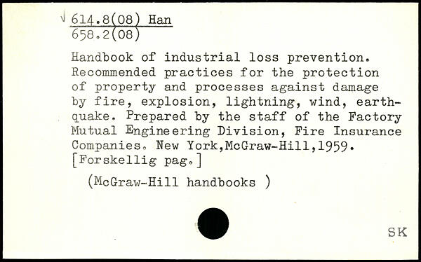 Handbook of industrial loss prevention. Recommended practices for the protection of property and processes against damage by fire, explosion, lightning, wind, earthquake. Prepared by the staff of the Factory Mutual Engineering Division, Fire
