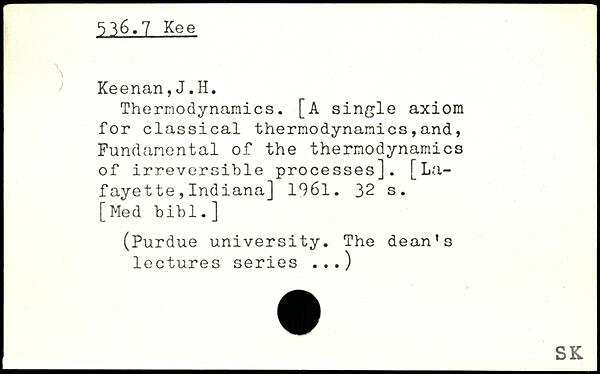 Thermodynamics. [A single axiom for classical thermodynamics,and, Fundamental of the thermodynamics of irreversible processes]. [ Lafayette ,Indiana] 1961.