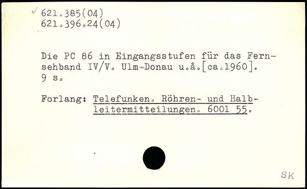 Die PC 86 in Eingangsstufen für das Fern“ sehband IY/Yo Ulm-Donau u0ä0 [ca, 1960],