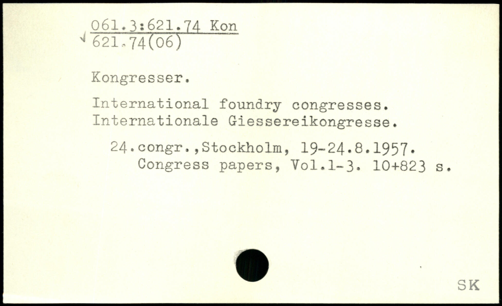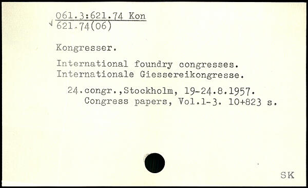 International foundry congresses. Internationale Giessereikongresse. 24.congr.,Stockholm, 19-24.8.1957. Congress papers, Yol.1-3.
