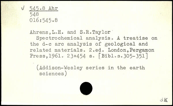 Spectrochemical analysis, A treatise on the d-c arc analysis of geological and related materials.