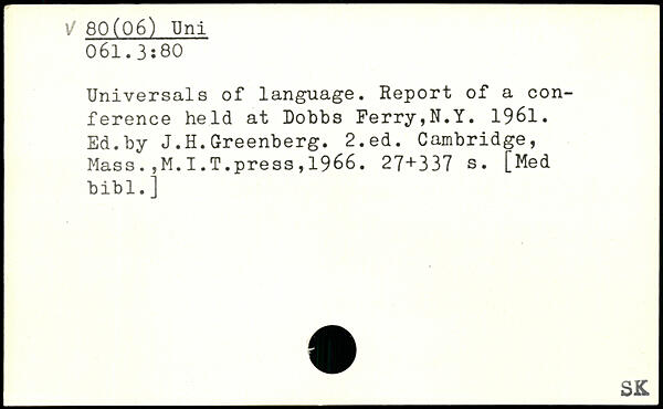 Universals of language. Report of a conference held at Dobbs Ferry,N.Y. 1961. Ed.by J.H.Greenberg.