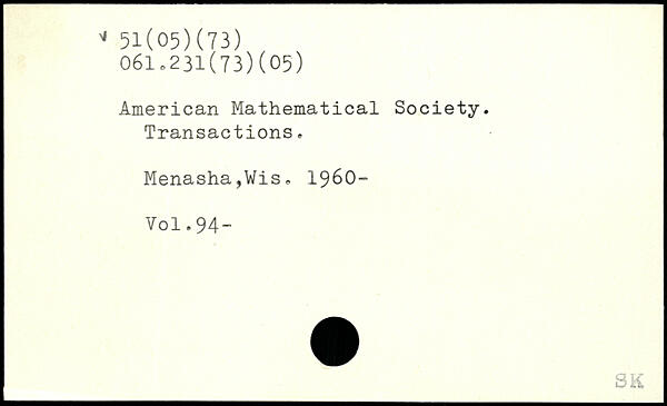 American Mathematical Society. Transactions. Menasha,Wis. 1960-