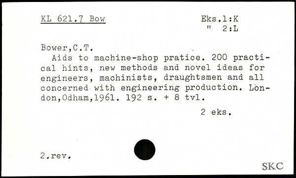Aids to machine-shop pratice. 200 practical hints, new methods and novel ideas for engineers, machinists, draughtsmen and all concerned with engineering production.