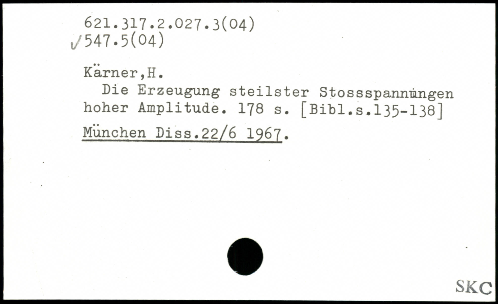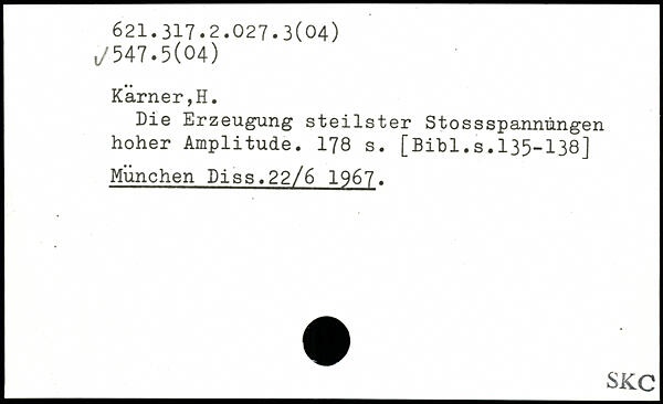 Die Erzeugung steilster StossSpannungen hoher Amplitude.