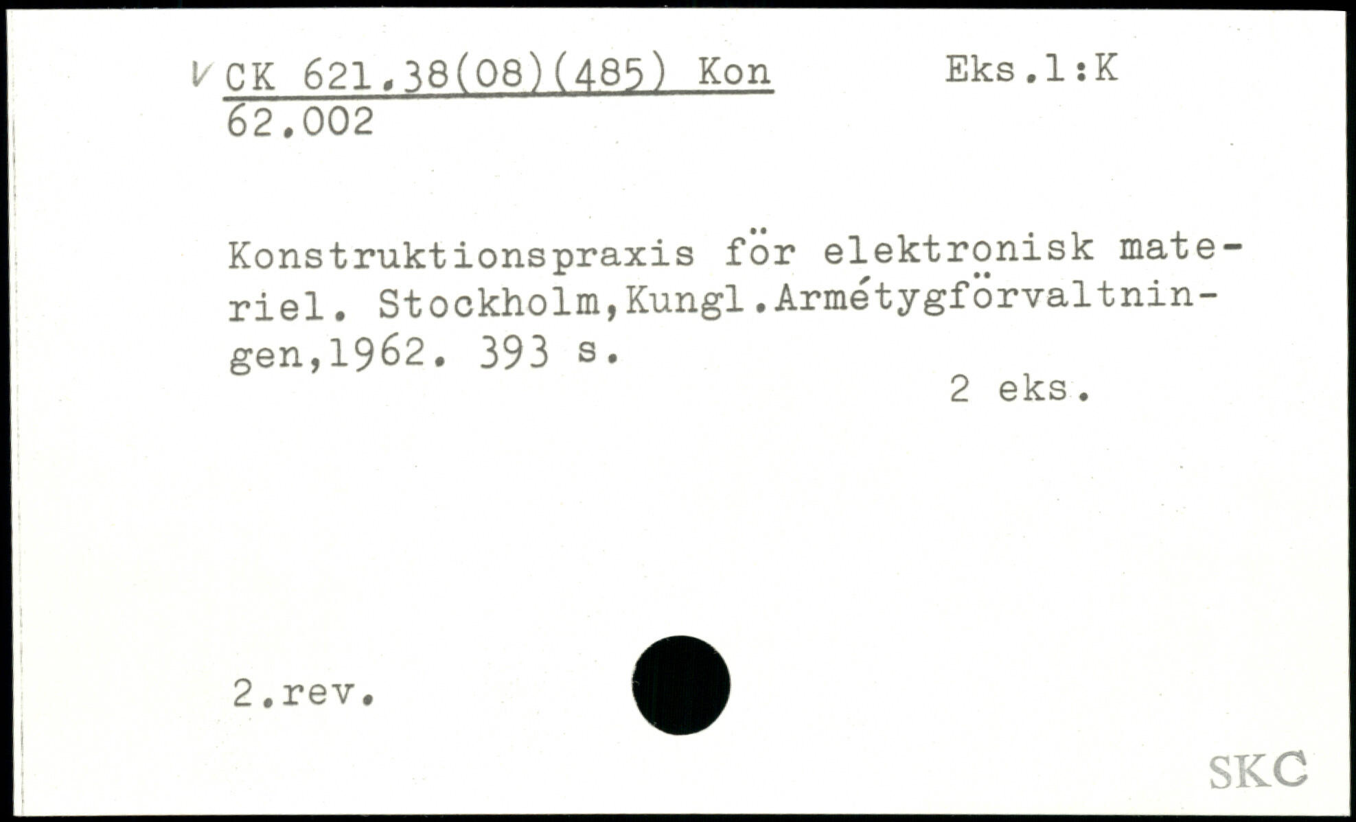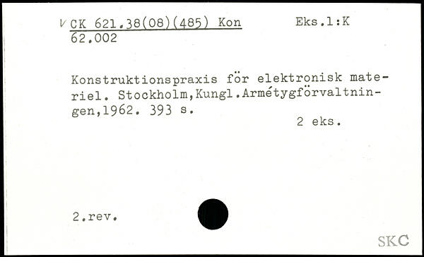 Konstruktionspraxis for elektronisk materiel. Stockholm,Kungl.Armétygförvaltnin- gen,1962.