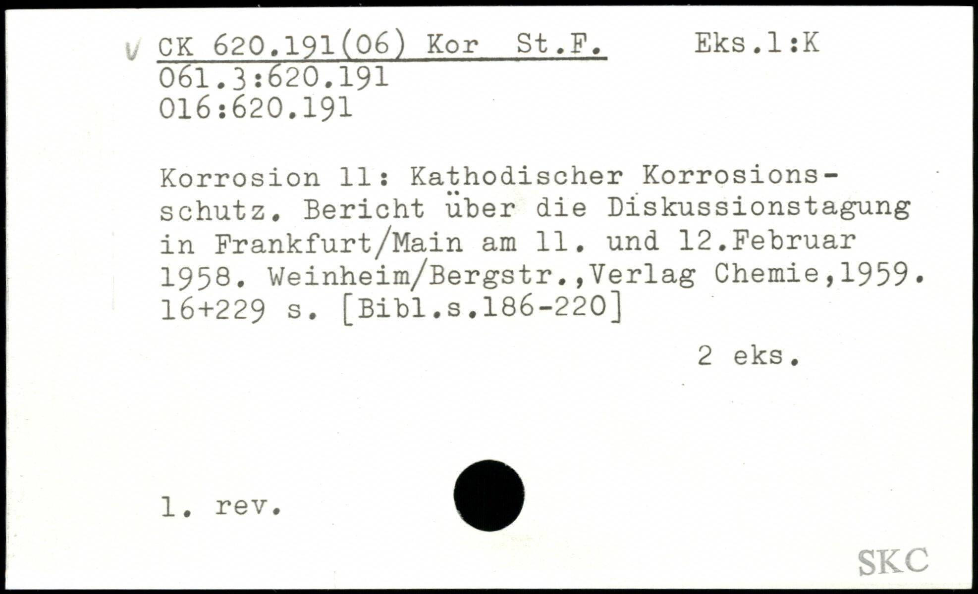 Korrosion 11: Kathodischer Korrosionsschutz. Bericht über die Diskussionstagung in Frankfurt/Main am 11. und 12.Februar 1958.