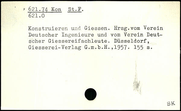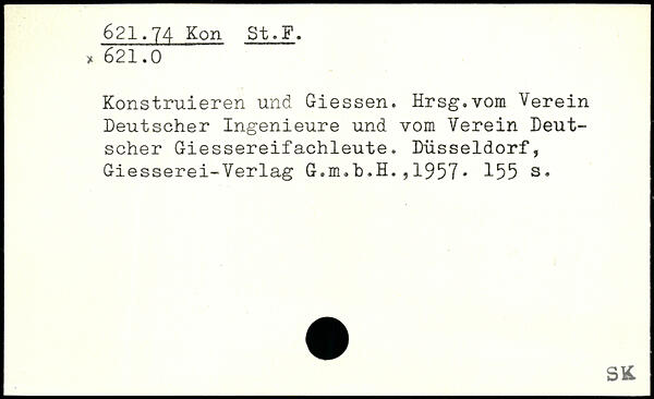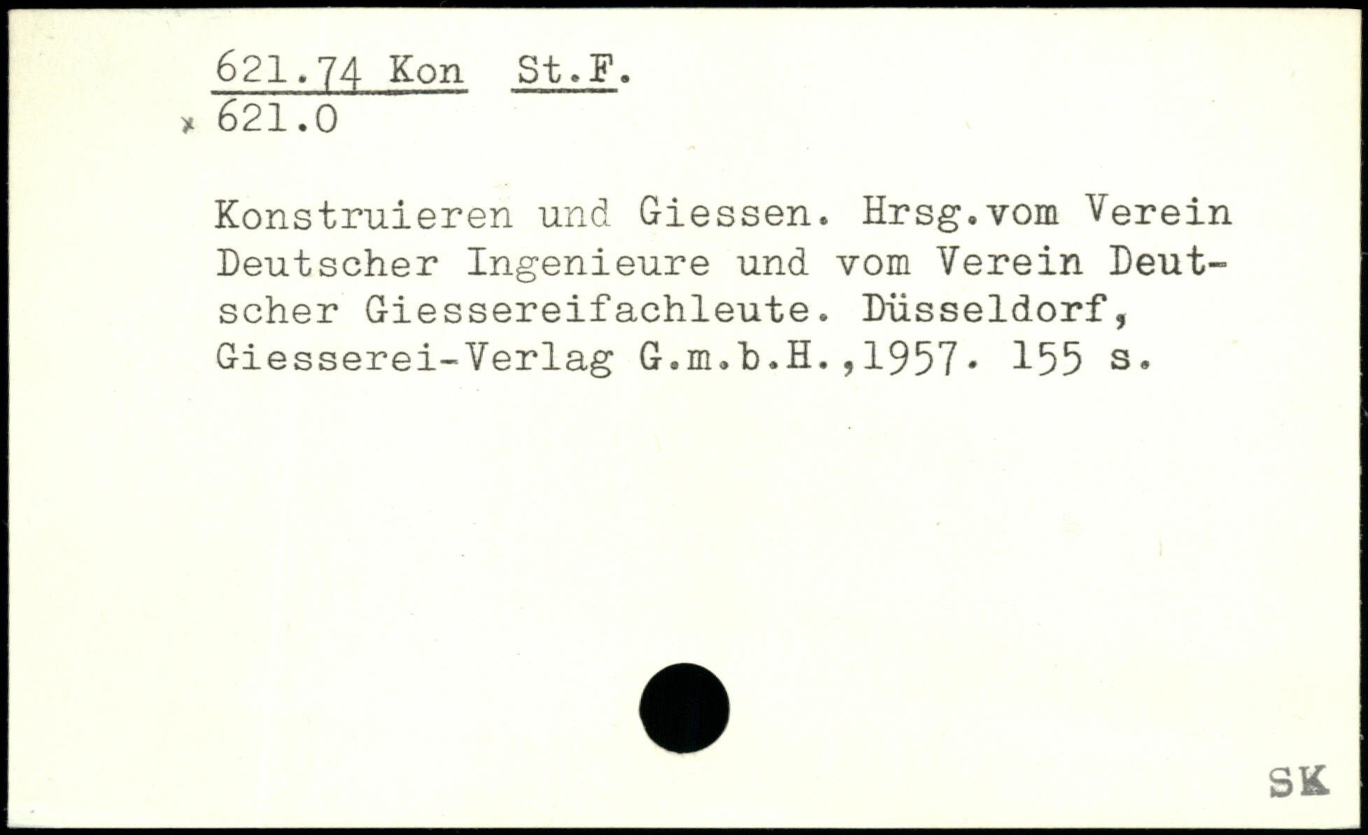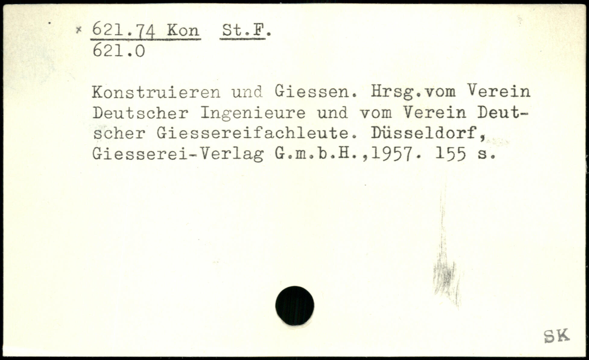 Konstruieren und Giessen. Hrsg.vom Verein Deutscher Ingenieure und vom Verein Deutscher Giessereifachleute. Düsseldorf, Giesserei-Verlag G.m.b.H.,1957.