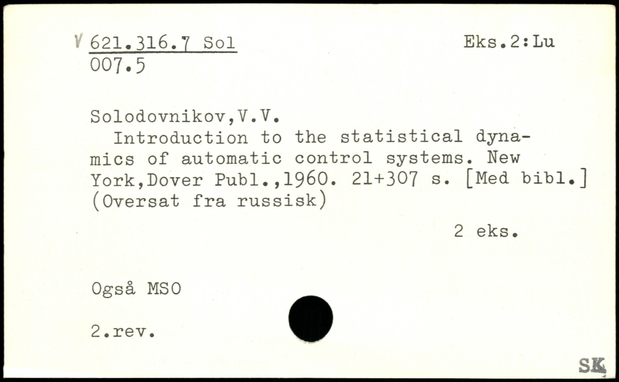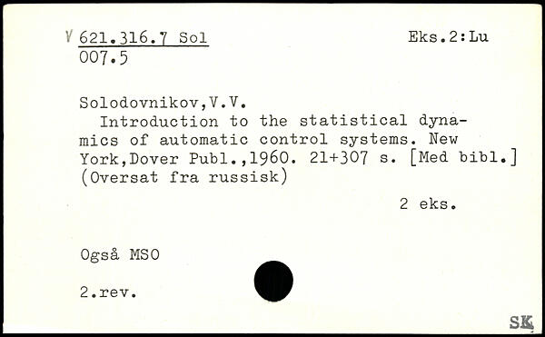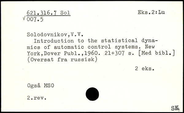 Introduction to the statistical dynamics of automatic control systems.