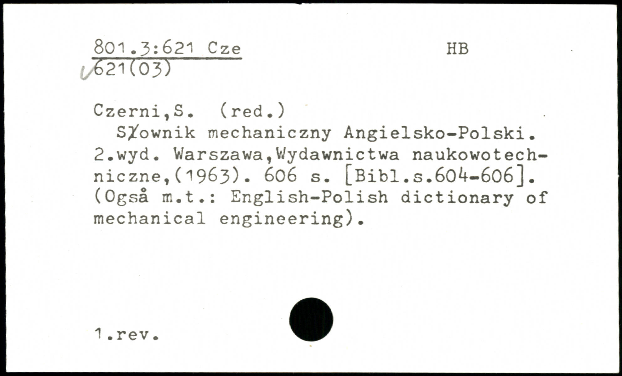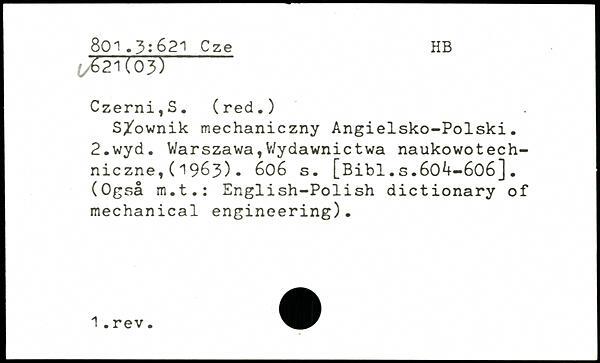 Czerni^S. (red.) S^ownik mechaniczny Angielsko-Polski. 2.wyd. Warszawa,Wydawnictwa naukowotech-niczne,(1963).