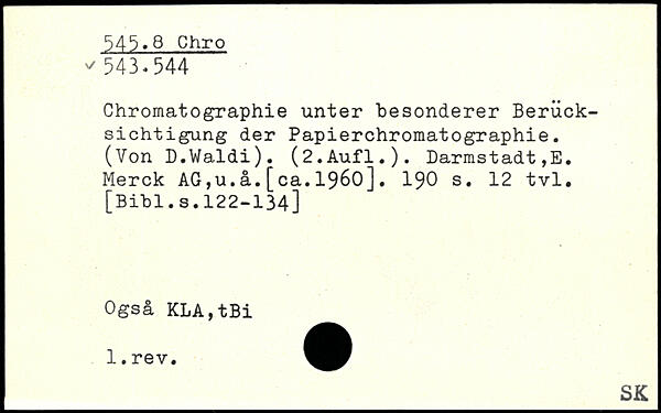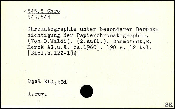 Chromatographie unter besonderer Berücksichtigung der Papierchromatographie. (Von D.Waldi). (