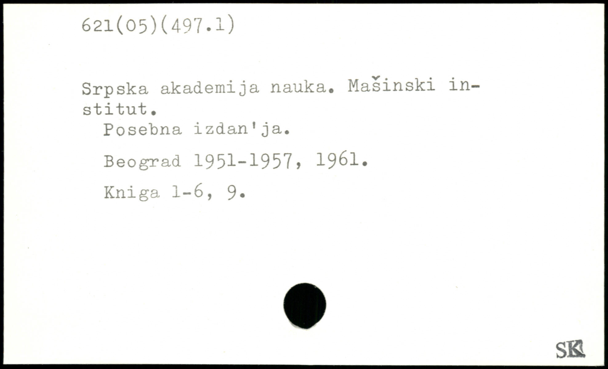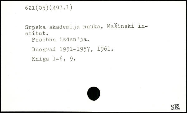 Srpska akademi ja nauka. Masinski institut. Posebna izdan'ja.