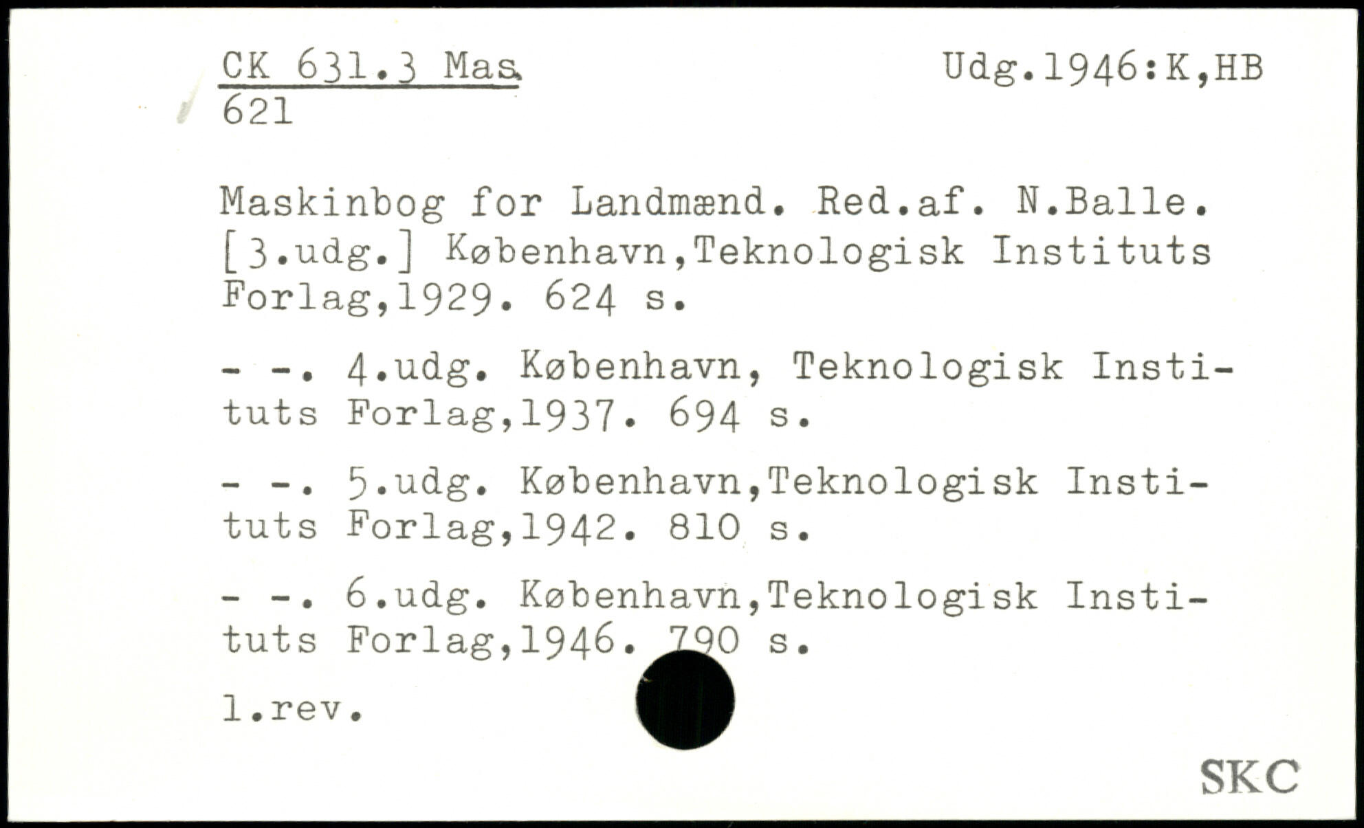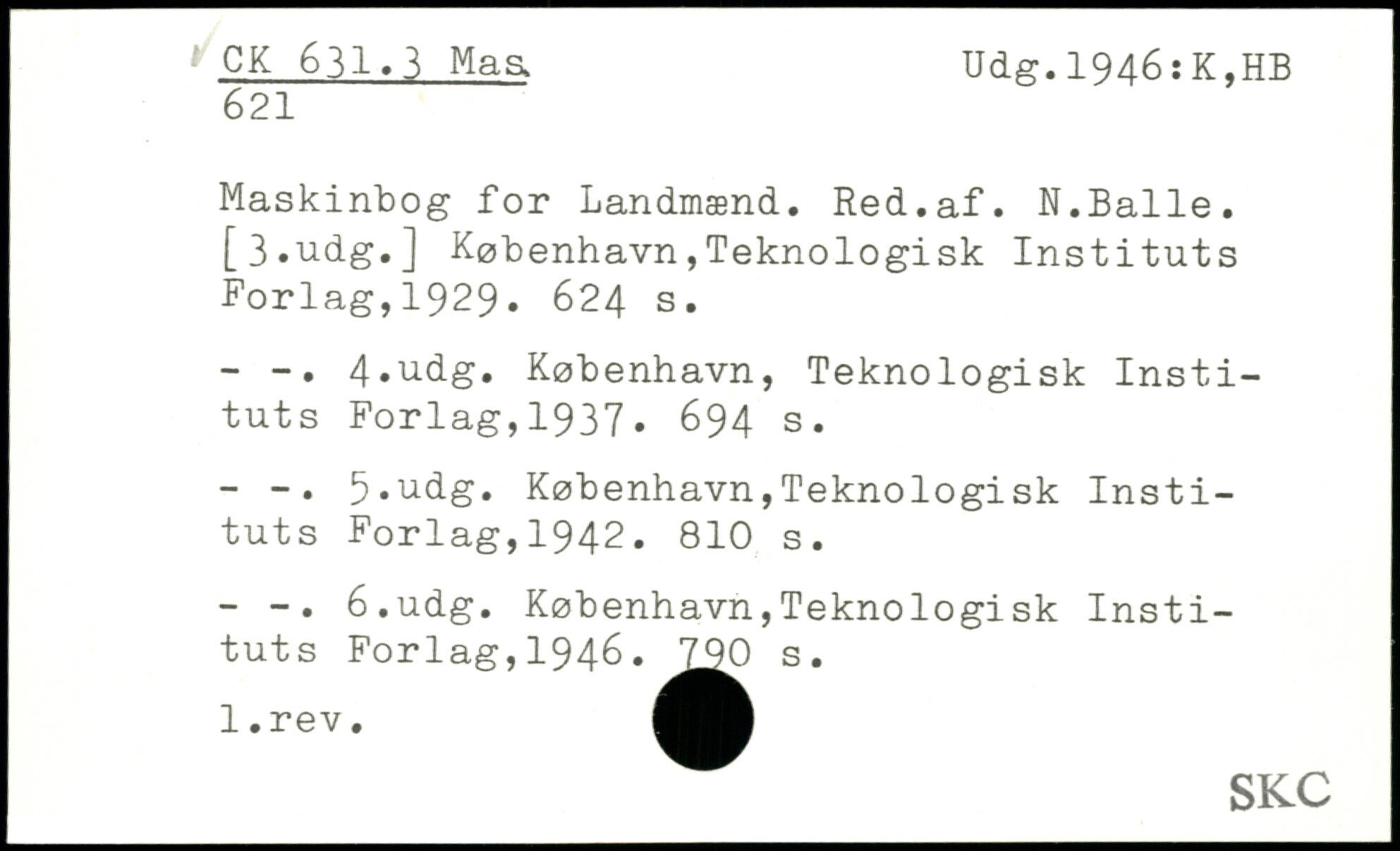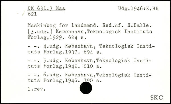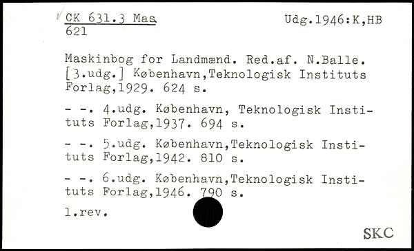 Maskinbog for Landmænd. Red.af. N.Balle. [3,udg.]