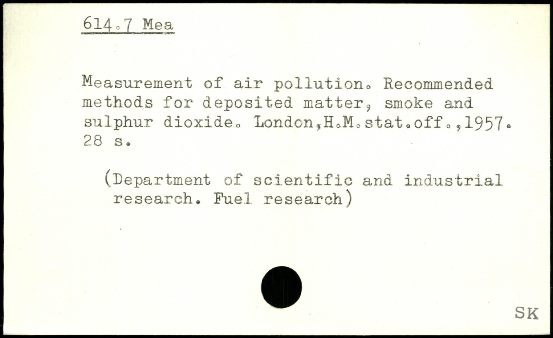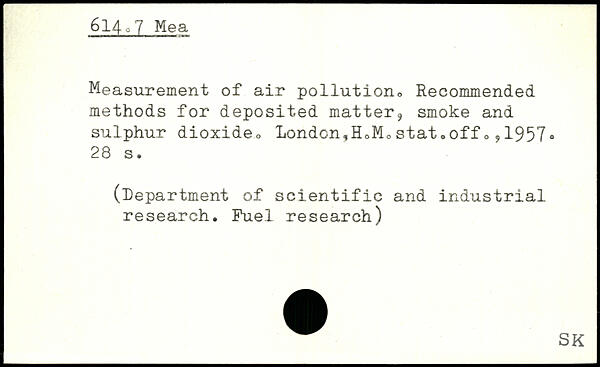 Measurement of air pollution,. Recommended methods for deposited matter, smoke and sulphur dioxide, London,H,M0stat.off,,1957