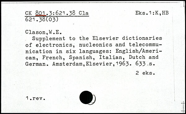 Supplement to the Elsevier dictionaries of electronics, nucleonics and telecommunication in six languages: English/Ameri-can, French, Spanish, Italian, Dutch and German.
