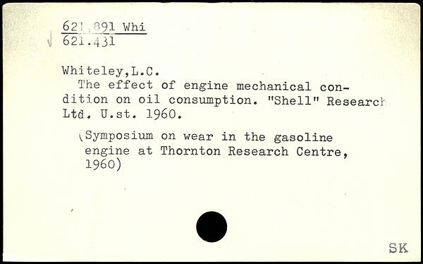 The effect of engine mechanical condition on oil consumption. "Shell” Research Ltd. U.st. 1960. VSymposium on wear in the gasoline engine at Thornton Research Centre, 1960)