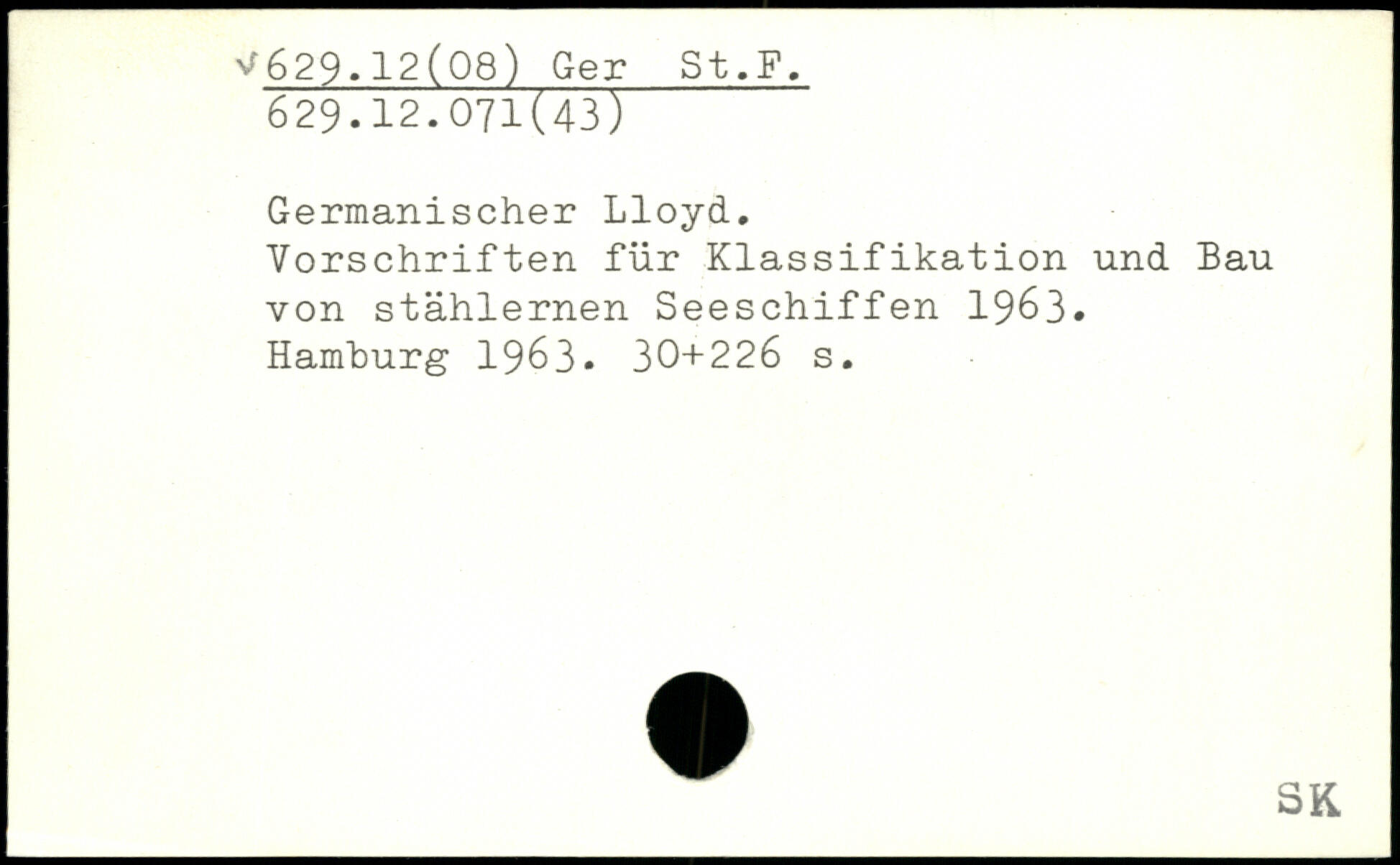 Germanischer Lloyd. Vorschriften für Klassifikation und Bau von stählernen Seeschiffen 1963.