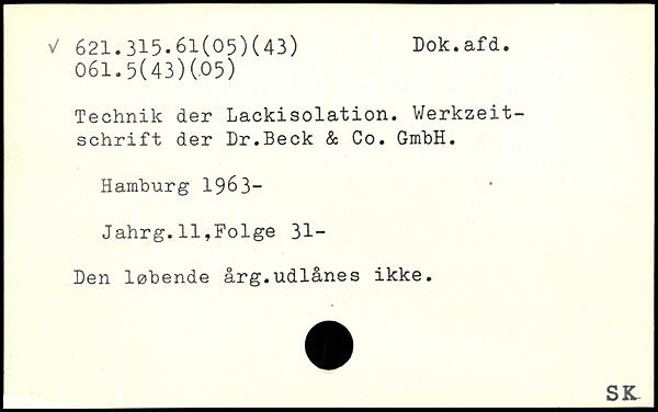 Technik der Lackisolation. Werkzeitschrift der Dr.Beck & Co. GmhH.