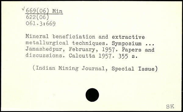 Mineral beneficiation and extractive metallurgical techniques. Symposium ...