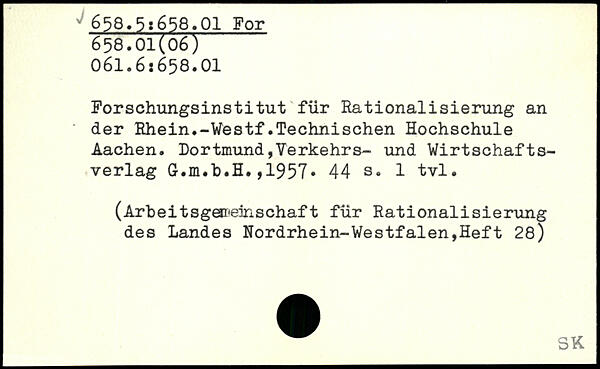 Forschungsinstitut für Rationalisierung an der Rhein.-Westf.Technischen Hochschule Aachen. Dortmund,Verkehrs- und Wirtschaftsverlag G.m.b.H.,1957.