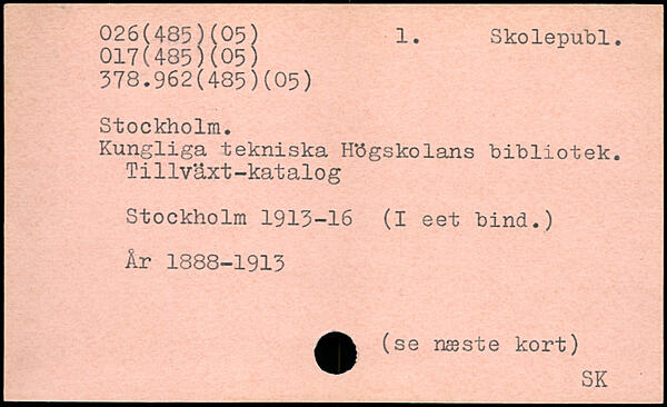 Kungliga tekniska Högskolans bibliotek. Til1växt-kat a1o g