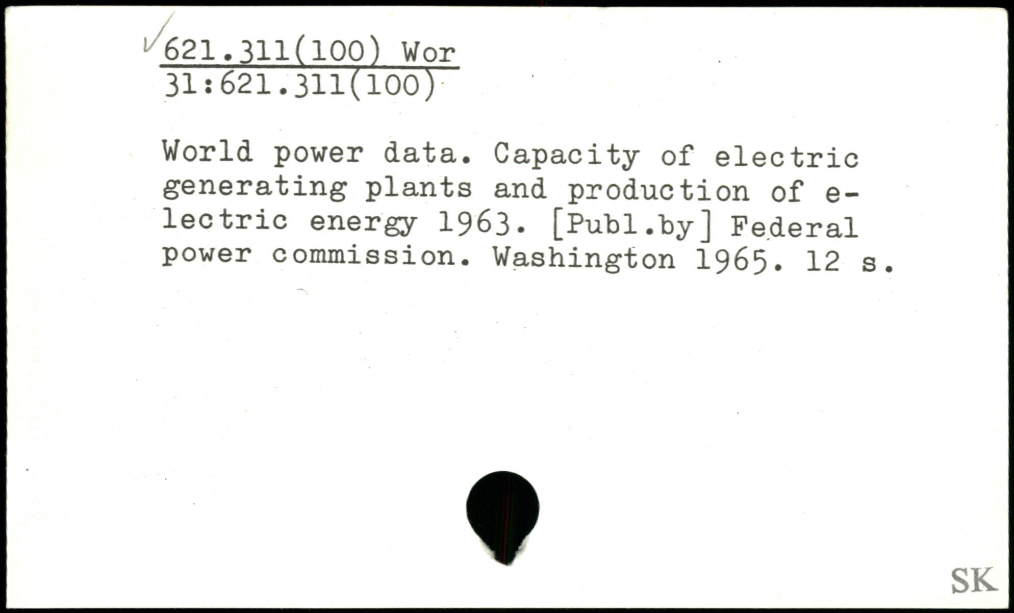 World power data. Capacity of electric generating plants and production of e-lectric energy 1963.