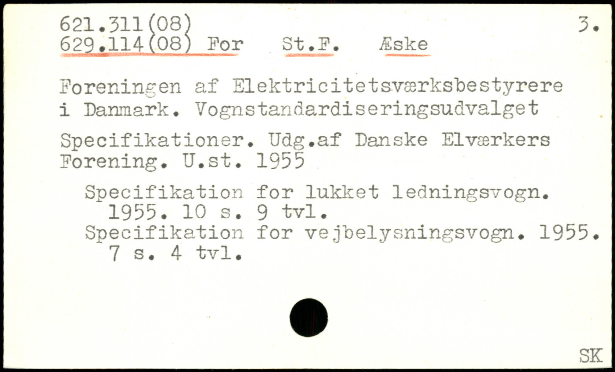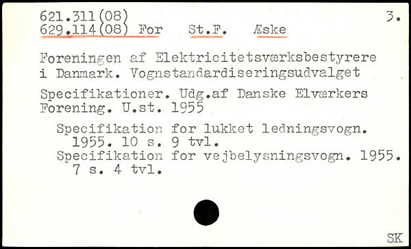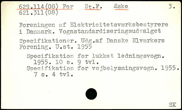 Foreningen af Elektricitetsværksbestyrere i Danmark. Vognstandardiseringsudvalget Specifikationer, Udg.af Danske Elværkers Forening, U.st.