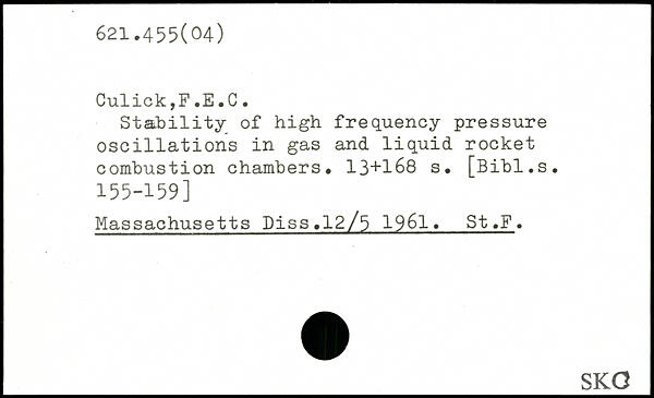 Stability of high frequency pressure oscillations in gas and liquid rocket combustion chambers.