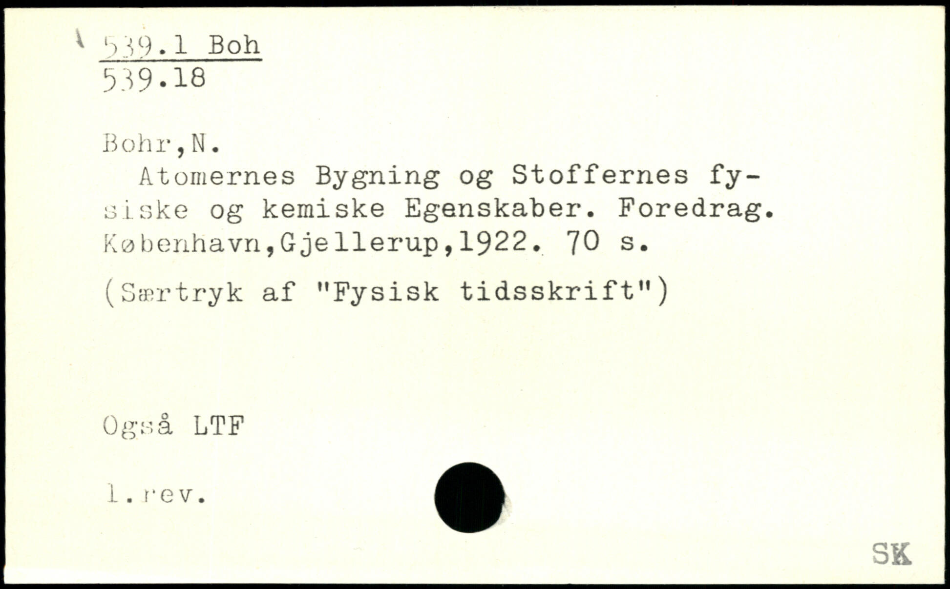 Atomernes Bygning og Stoffernes fysiske og kemiske Egenskaber. Foredrag.