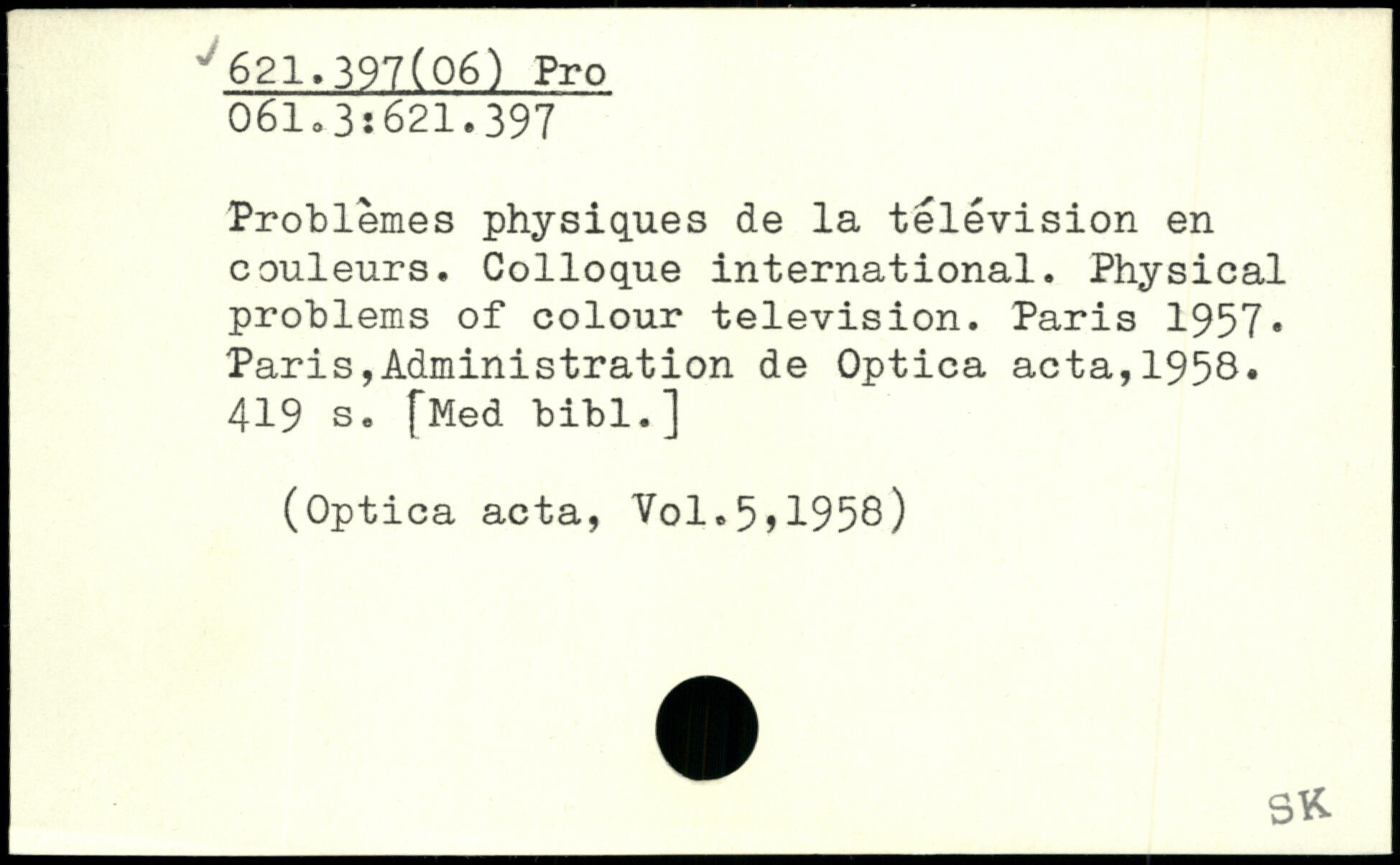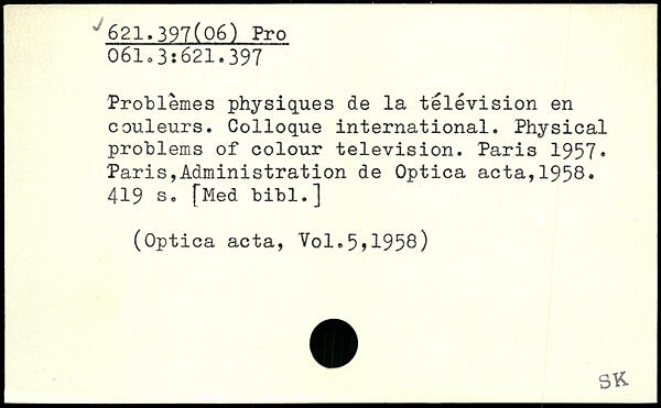 Problèmes physiques de la télévision en couleurs. Colloque international. Physical problems of colour television.