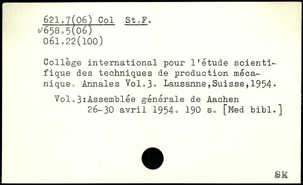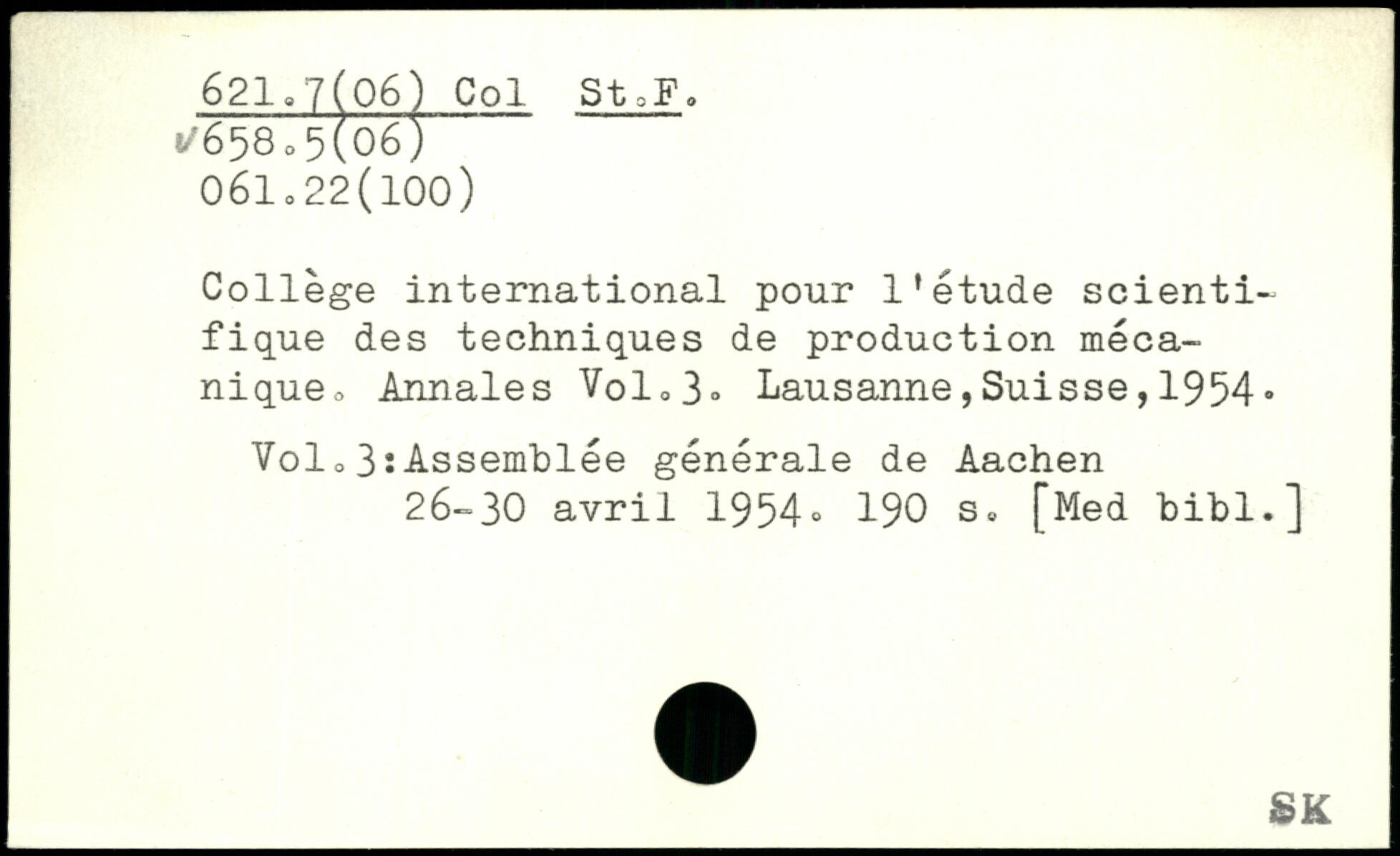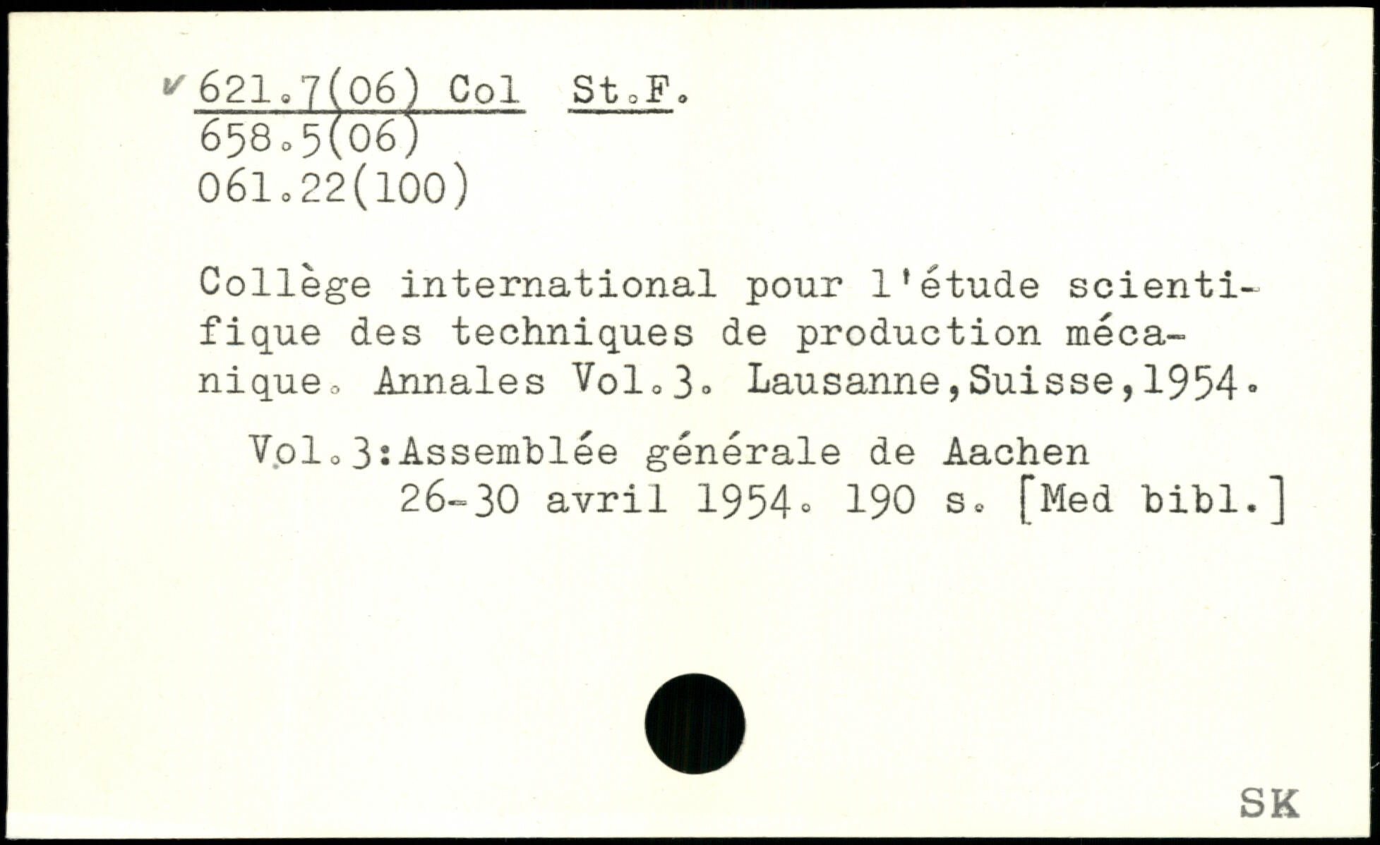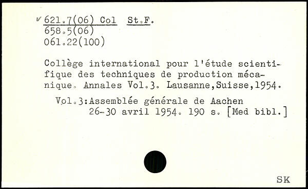 Collège international pour l'étude scientifique des techniques de production mécanique, Annales Vol,3
