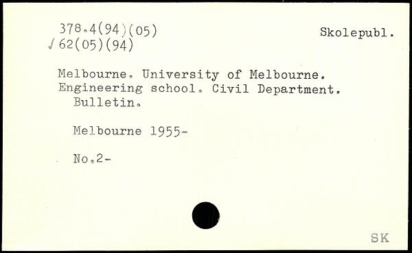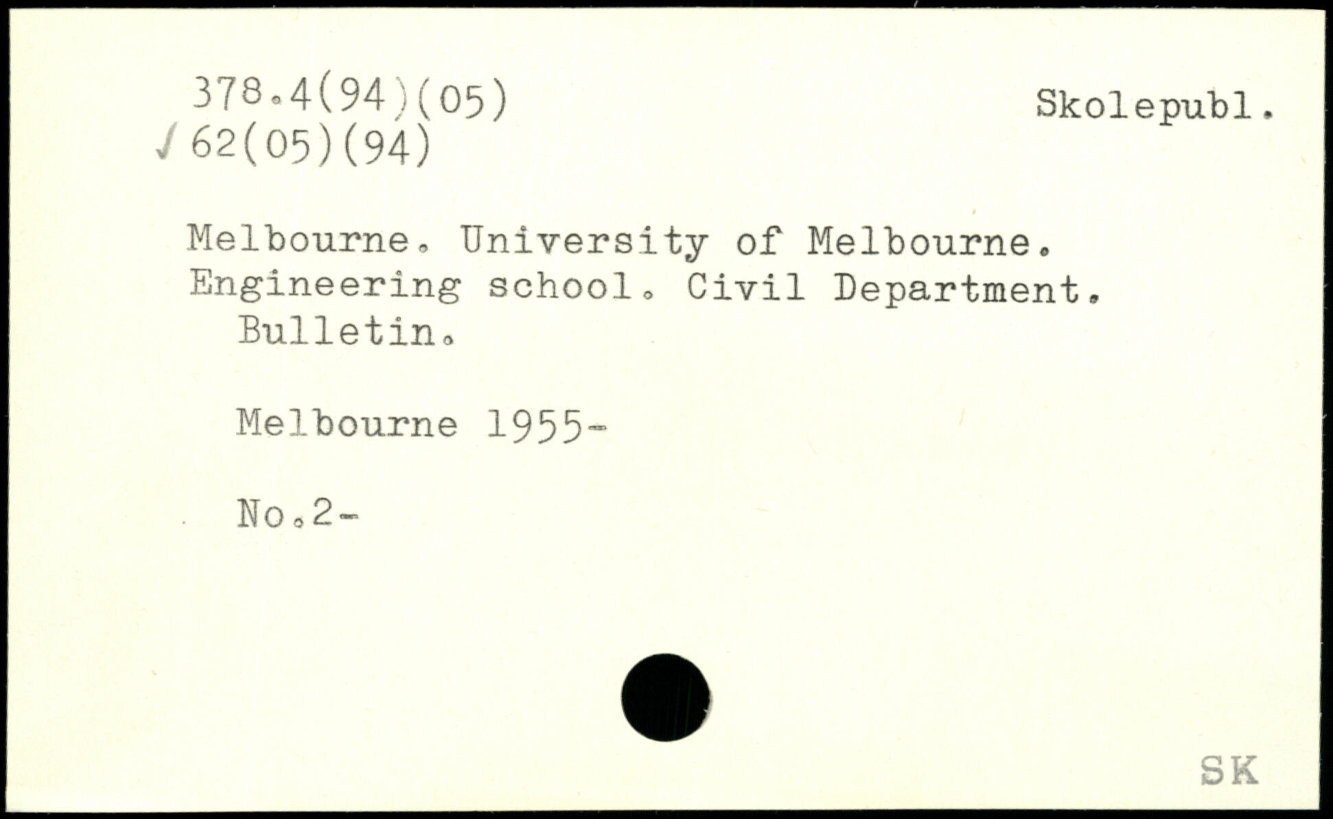 Melbourne, University of Melbourne, Engineering school. Civil Department. Bulletin, Melbourne 19 5 5 ~ No o 2-
