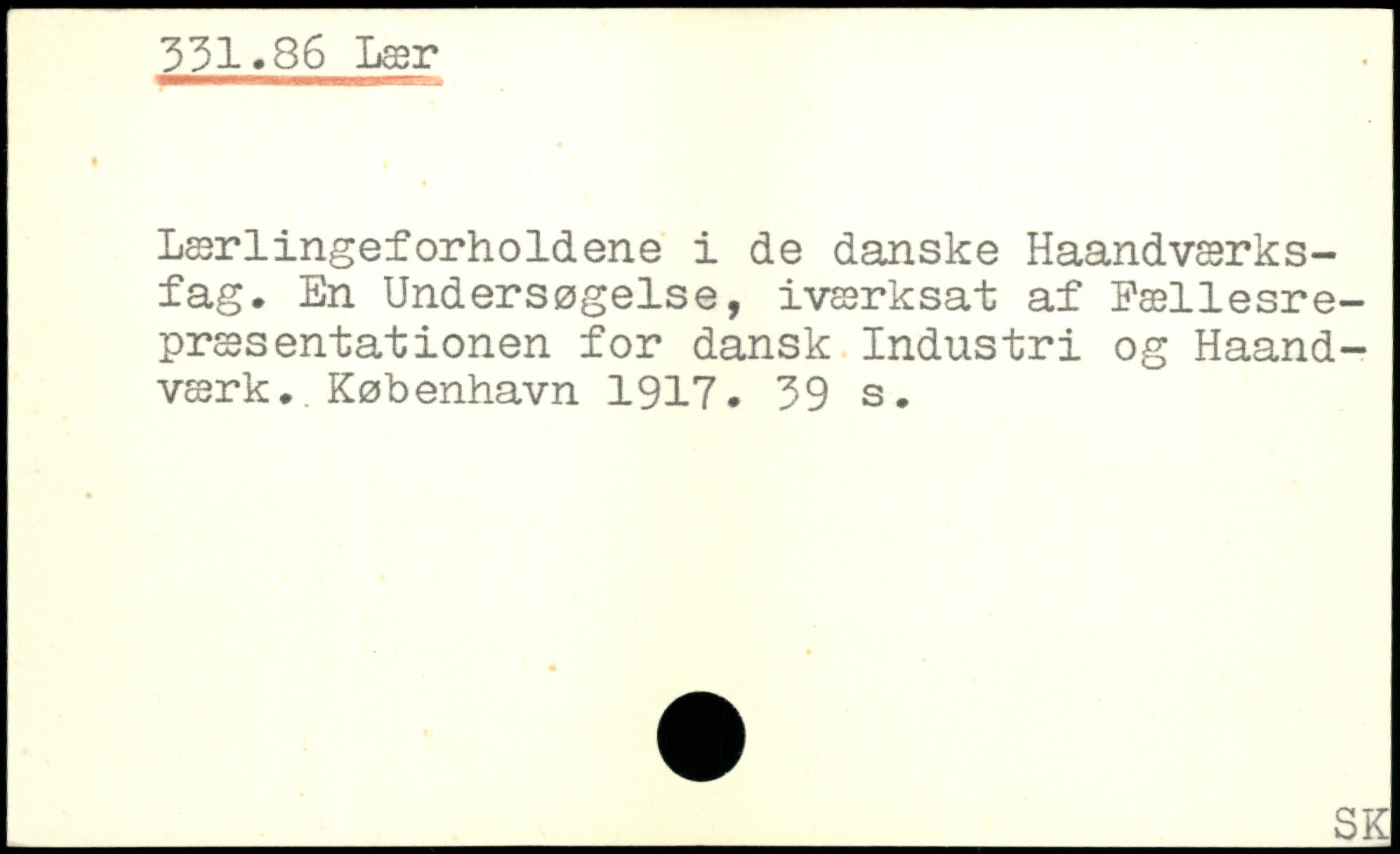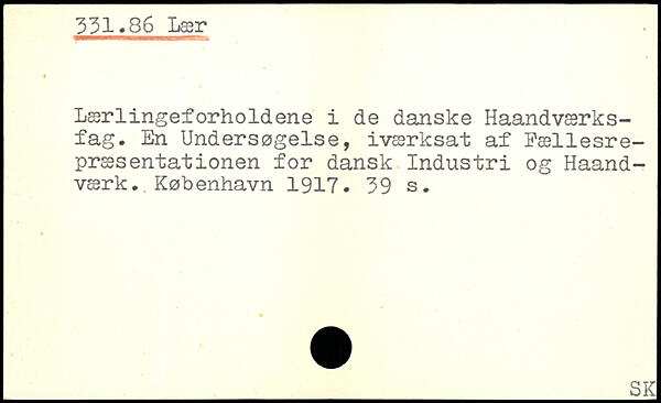 Lærlingeforholdene i de danske Haandværks-fag. En Undersøgelse, iværksat af Fællesrepræsentationen for dansk Industri og Haand-værk.