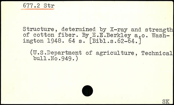 Structure, determined "by X-ray and strength of cotton fiber. By E.E.Berkley a.o. Washington 194-8.